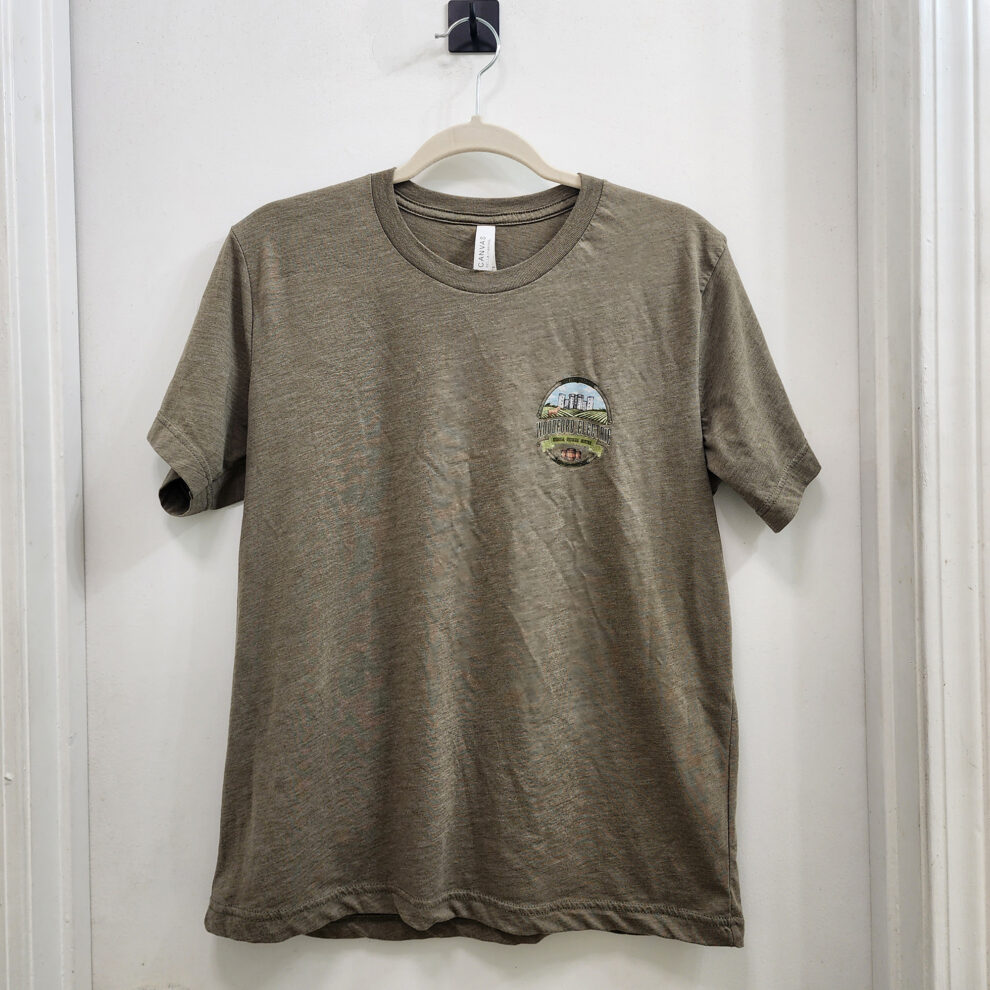 About Tee-shirt: 100% cotton, rounded neck, with logo on front and back. In sage green