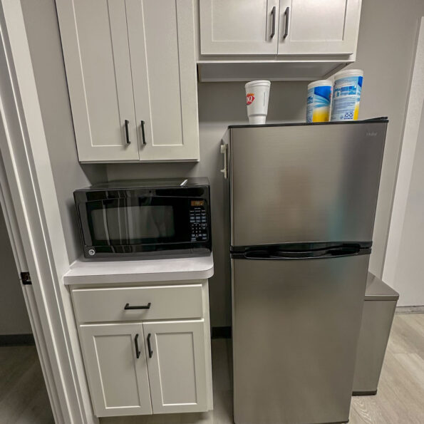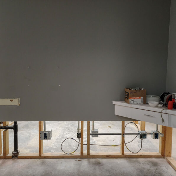 The landlord was amazing and got to work immediately to reestablish their place of work. Unfortunately, the damage was so severe, the office had to be gutted. After days of drying the studs, we got to it. It took us 2 weeks of demo, reconfiguring and rough-in work in January. By April, we spent an additional 2 weeks of putting the finishing touches on. All together after a grand total of 4 weeks with this office it was in better working condition than ever before!